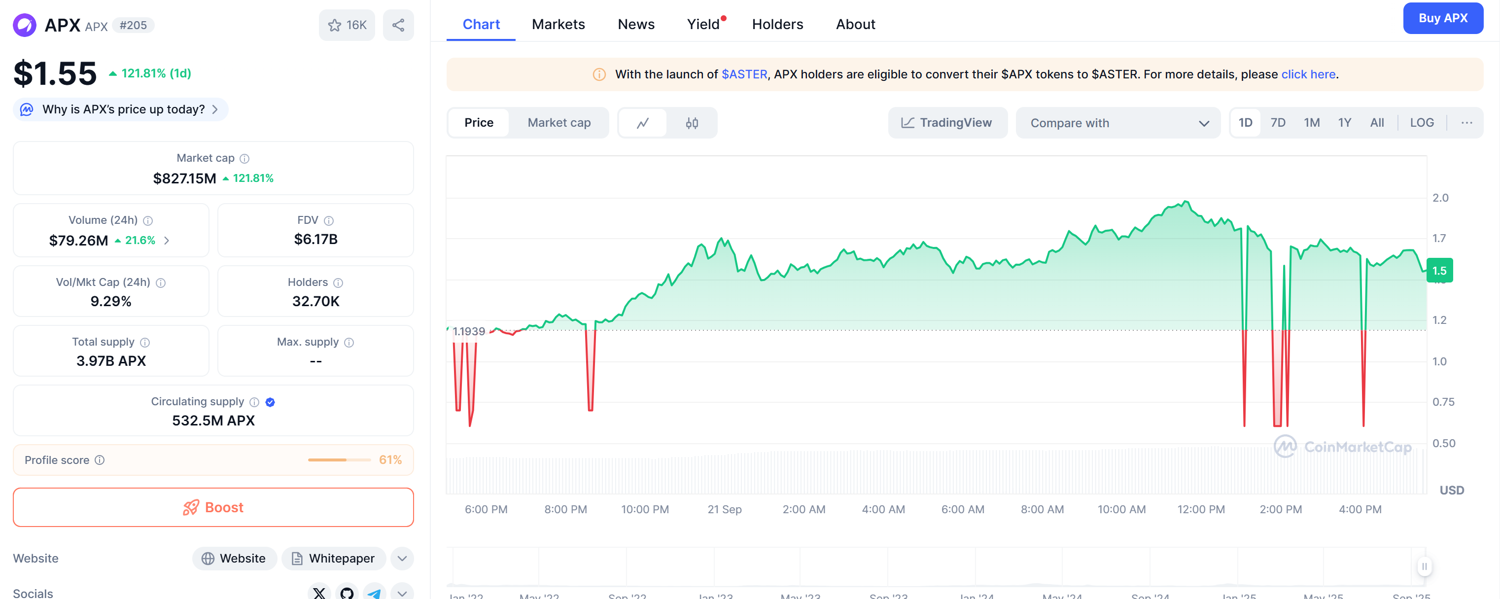 Fiyatlardaki son artış, uzun zamandır Awaited Jeton güncellemesinin başlatılmasından sonra geldi. APX sahipleri artık jetonlarını Aster protokolünün yerel jetonlarıyla Aster ile değiştirebilirler.